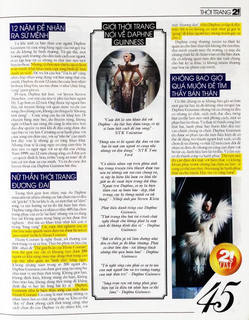 "Daphne Guinness - Nữ thần thời trang" (tác giả Linda Nhung Trần) đăng trên tạp chí 2! Số 319 (25/06/2013).